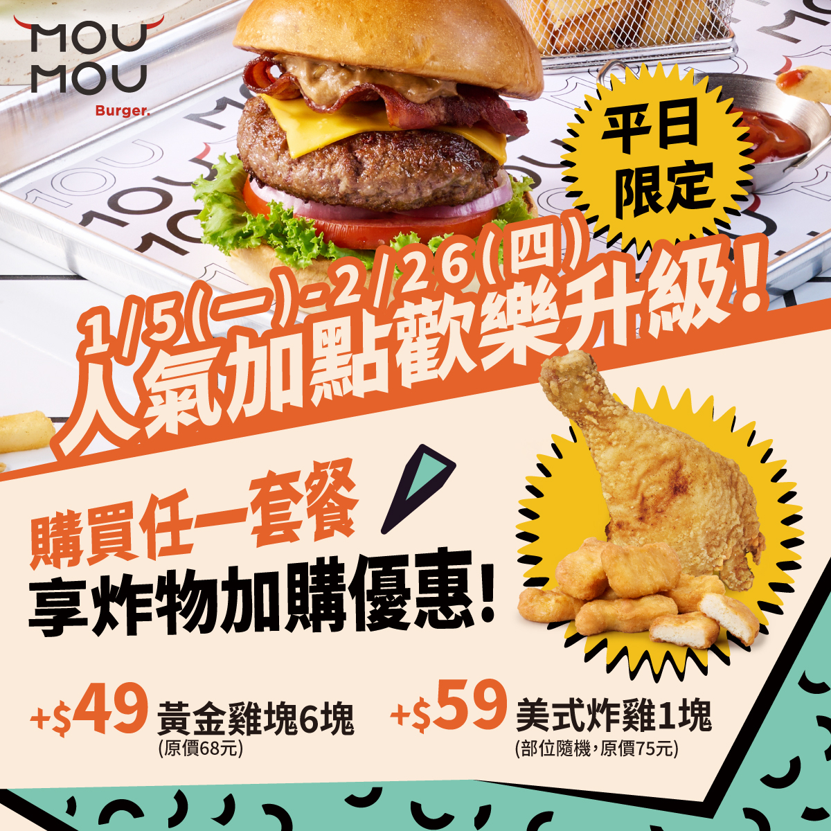 🍔MOUMOU人氣加點歡樂升級~現買現省超滿足!